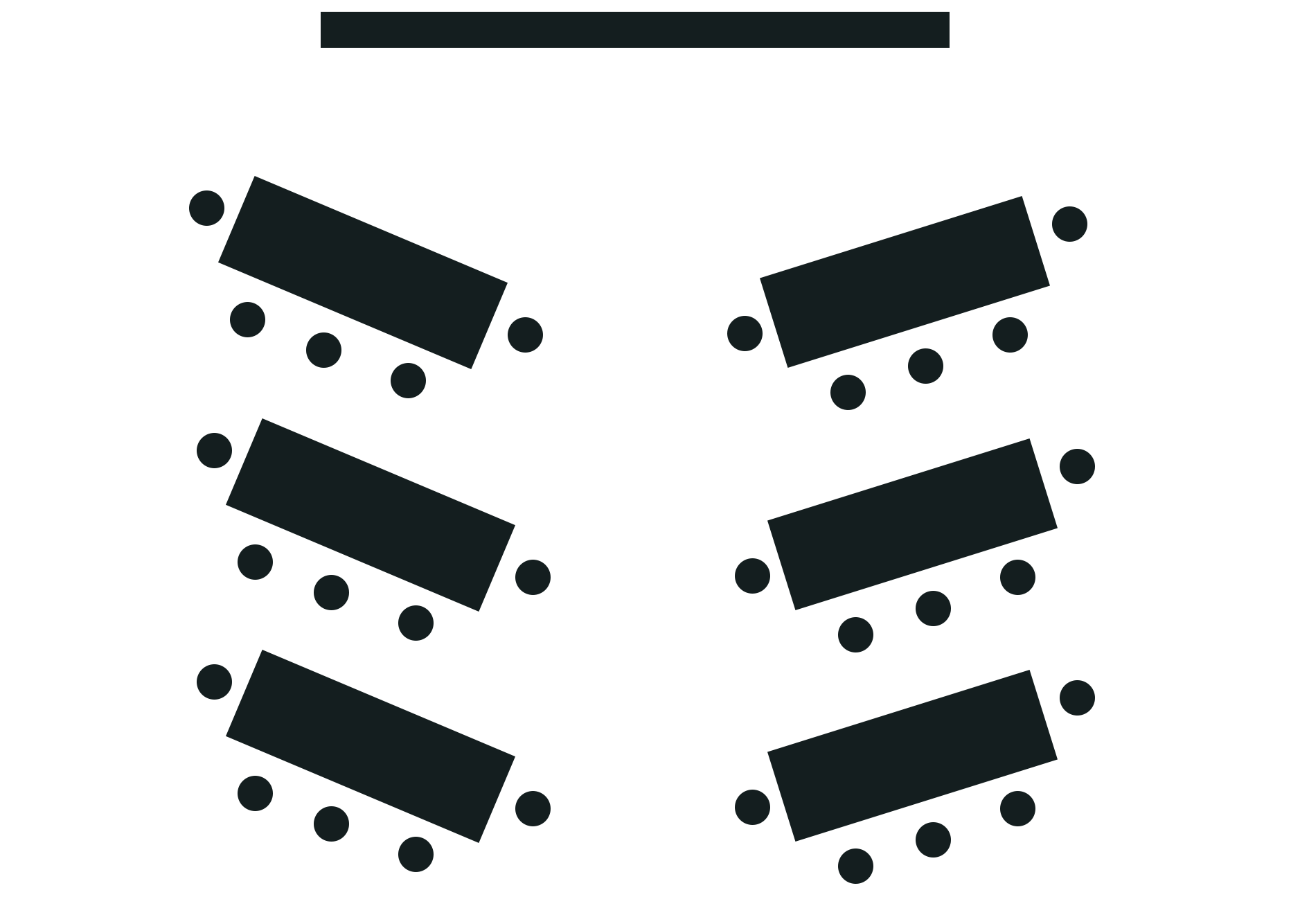 The Lounge has capacity for up to 30 people in a classroom layout, 6 tables with 5 seated per table.